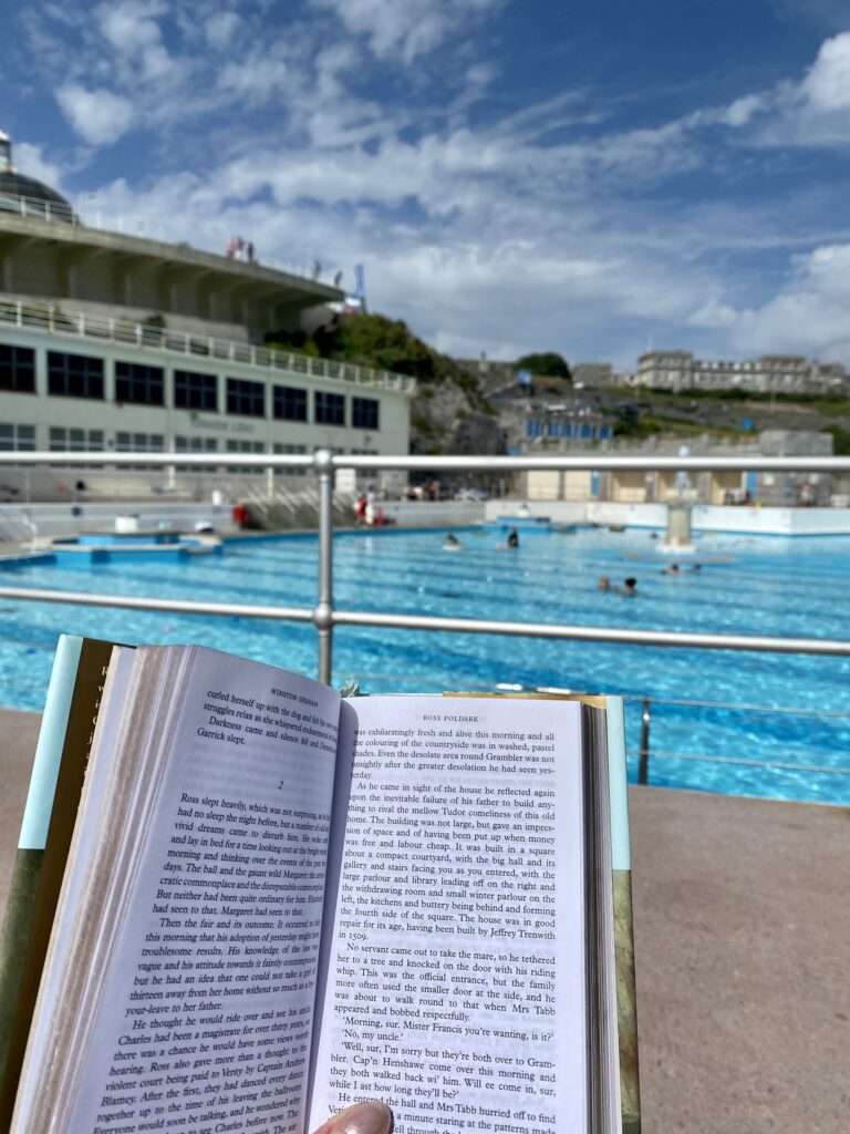 Odpoledne jsme měli štěstí a obloha se rozjasnila. Využili jsme příznivé změny počasí a šli si zaplavat do bazénu Tinside Lido s mořskou vodou, který je přímo vedle moře a nabízí pěkný výhled. Bazén byl nedaleko našeho ubytování a velice nás lákal, nicméně jsme čekali, jak se vyvrbí nepředvídatelné počasí. Nakonec jsme si odpolední plavání moc užili, voda je pořád poměrně studená, nicméně ji ohřívají a je alespoň teplejší než moře. Navíc jsem tuto dovolenou pojala jako otužující, protože právě otužilost Britům závidím a snažím se na ní zapracovat.
