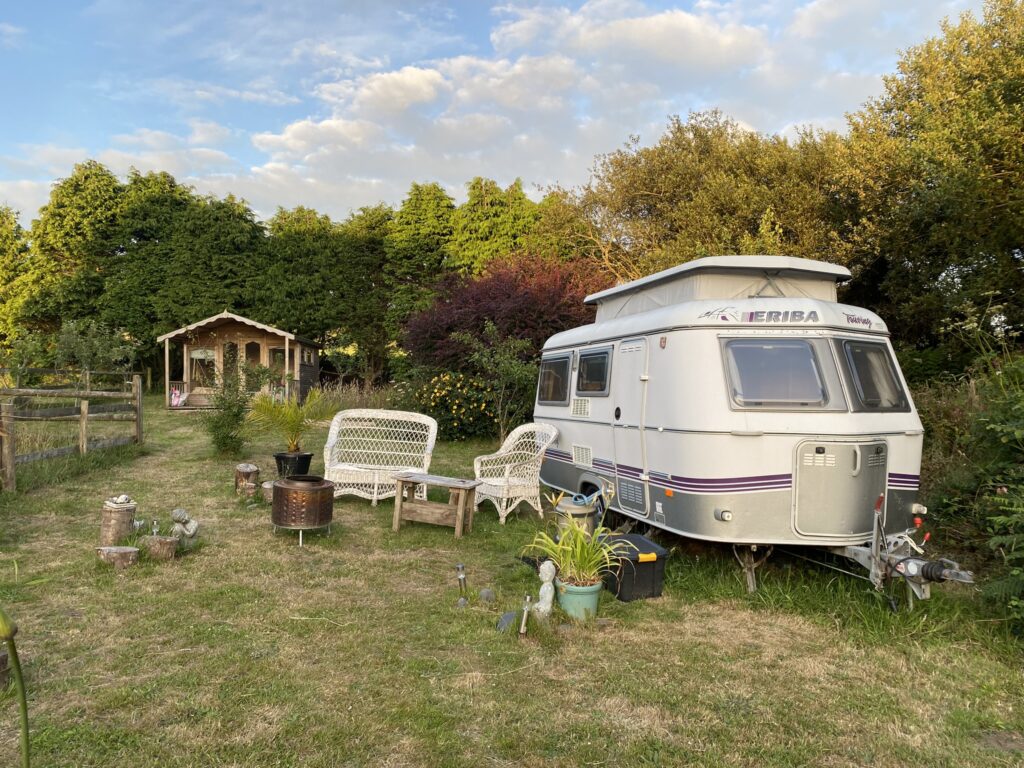 Z hradu Tintagel už jsme zamířili na naši farmu, kde nás čekal útulný karavan, ohniště, poníci a ovce.