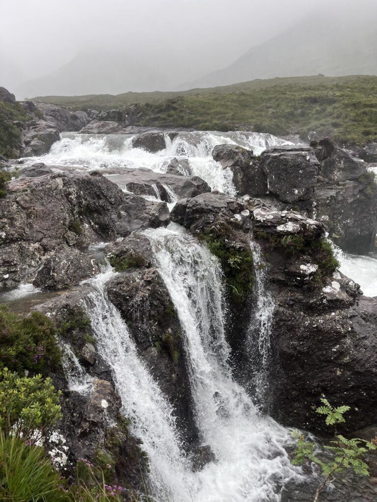 Ohledně dopravy autem pak zase zmíním jiné výhody, zejména určitou flexibilitu, úložný prostor a také možnost spaní na divoko v autě, pro což jsou ve Skotsku opravdu ideální podmínky. Samozřejmě se autem dostanete na odlehlá místa, kam žádná veřejná doprava nejezdí, a kde žije minimum lidí, a která proto najde menší počet turistů. Což jsme hledali právě letos. A protože ve Skotsku opravdu často prší a počasí se během dne několikrát prostřídá, hodí se mít zázemí, kde se člověk ohřeje nebo osuší. Taky je dobré poznamenat, že je lepší místo deštníků investovat do opravdu nepromokavých bund, které něco vydrží. Při místní síle větru jsou deštníky většinou k ničemu, a je lepší mít voděodolné oblečení a případně ještě pláštěnku. Moje „nepromokavá“ bunda nebyla tak odolná, jak jsem doufala, takže jsem si v městě Portree na ostrově Skye musela koupit Goretex bundu do 10 000 mm deště. Prodávali tam i další „skotskou“ výbavu, např. skladné tenké kalhoty, které sloužily jako efektivní a voděodolná vnější vrstva.