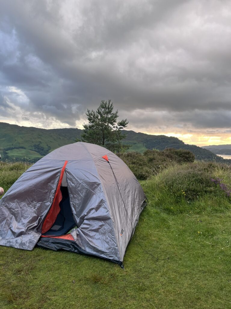 Poté jsme stále ještě v Portree našli útulnou hospůdku, kde jsme si dali výborné fish & chips. Už se chýlilo k večeru, takže po jídle jsme zamířili rovnou do místního kempu, kde jsme žasli nad skvělým vybavením, mezi které se řadí čisté a moderní koupelny, teple vytopená sušárna s pračkami a sušičkami, s milým personálem k tomu. Po dešti u Fairy Pools jsme sušárnu opravdu ocenili. Naštěstí se večer vyčasilo, takže jsme mohli postavit stan a udělat si polévku na plynovném vařiči.