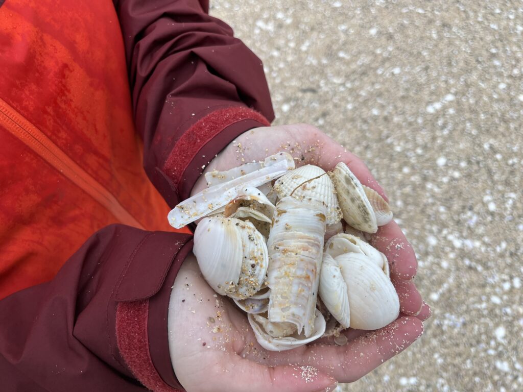 Po tuleních jsme našli krásnou kavárničku Skoon Gallery, plnou barevných obrazů malebných skotských krajinek k zakoupení. Večer jsme si ještě obešli pláž Nisabost Beach se žlutým pískem a krásnými mušlemi, a nakonec jsme našli místo na přespání na nejkrásnějším výhledu nad pláží Seilebost. Večeře byla z vařiče, schovaného před větrem mezi kameny.
