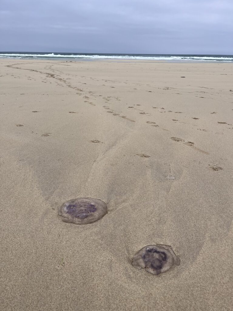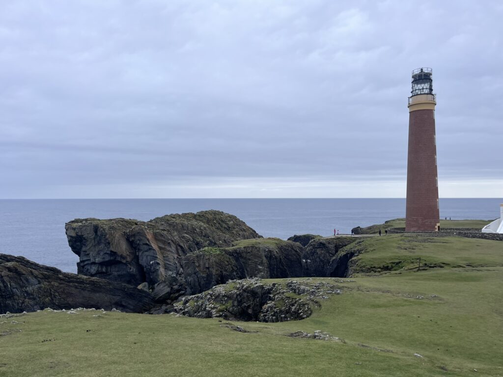 Po snídani jsme z kempu vyrazili k nejsevernějšímu bodu Vnějších Hebrid, k majáku Butt of Lewis, kde se nabízely uchvatné výhledy na oceán, skály a tisíce hnízdících ptáků. Opravdu snadno se tu cítíte jako na konci světa. Kousek níž jsme se prošli po žluté pláži Eoropie Beach, která byla plná fialových medúz.