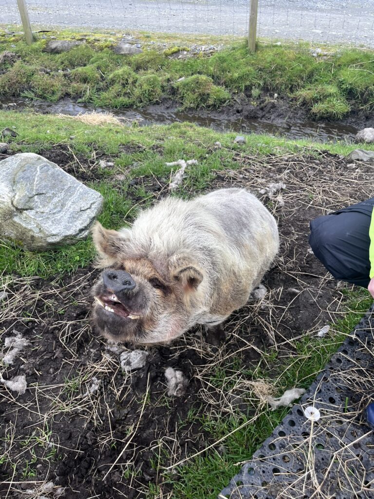 Po snídani a zabalení veškerého vybavení nás čekala cesta zpět od přístavu Tarbert na ostrově Harris, odkud jsme měli objednaný odpolední trajekt zpět na Skye. Po cestě jsme se ještě zastavili u hebridských zvířátek, jak jsem si je nazvala. Jedná se o moc milou farmu Callanish Alpacas, kterou vedou dva bývalí zdravotníci, kteří svá zvířata pravidelně berou mezi pacienty a seniory do různých zdravotnických zařízení. Majitelé a jejich zaměstnanci vám ochotně udělají prohlídku farmy, nechají vás zvířata nakrmit, pohladit a celkově si návštěvu užít. Jejich podnik pak můžete podpořit v malé kavárně, kde dělají domácí polévky, obědy a pečou výborné dorty, případně si můžete koupit plyšovou alpaku nebo jiné oblíbené zvířátko.